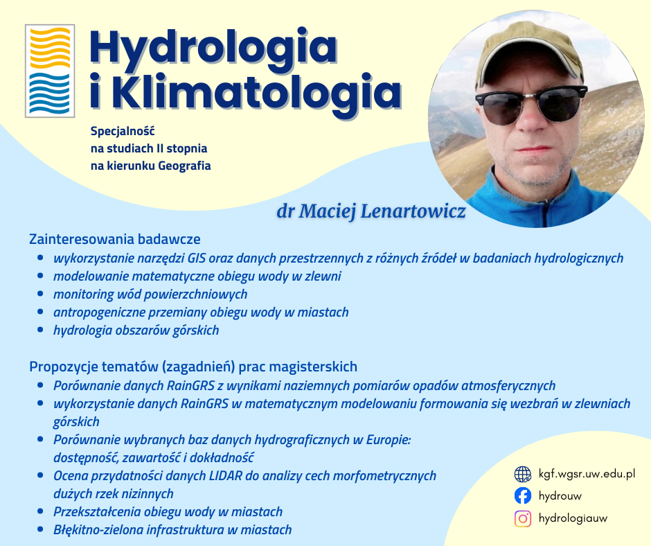 - wykorzystaniem GIS i danych teledetekcyjnych w hydrologii i klimatologii